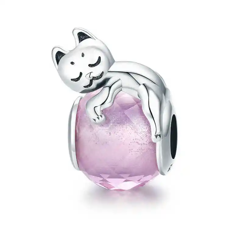 El charm está hecho de Plata esterlina 925 con su respectivo sello. Está incrustado de Cristal. Existe en colores: rosado. Es totalmente compatible con pulseras Pandora y cualquieras otras marcas europeas.