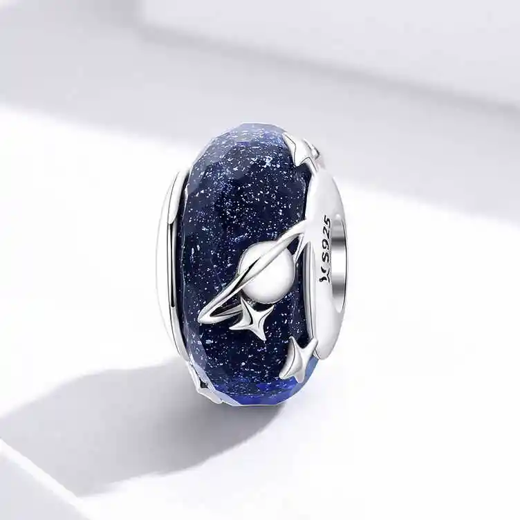 El charm está hecho de Plata esterlina 925 con su respectivo sello y Murano . Existe en colores: azul. Es totalmente compatible con pulseras Pandora y cualquieras otras marcas europeas.