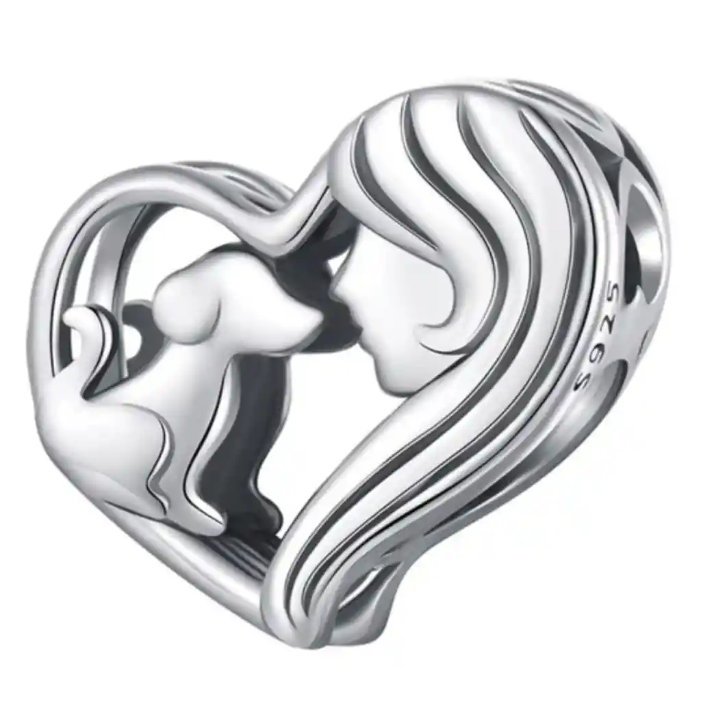 Este tierno charm de plata 925 representa el lazo inseparable entre una mujer y su perrito, simbolizando amor, compañía y fidelidad. Perfecto para quienes sienten que sus mascotas son parte de la familia. Compatible con pulseras tipo Pandora, combina fácilmente con otros charms y dijes para crear una pulsera personalizada con tu propia historia. Especificaciones: - Material: Plata Ley 925 - Color: Plata - Medida: 1.2cmx1.2cm - Compatibilidad: Pulseras tipo Pandora y similares - Estilo: Tierno / Animal Lover / Emotivo - Presentación: incluye caja elegante, ideal para regalar. - Estilo: Elegante. PULSERA NO INCLUIDA