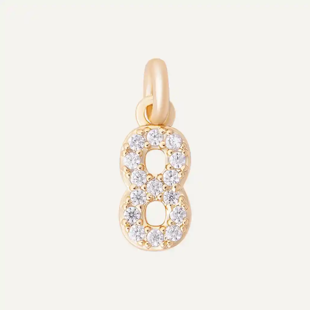 Los nuevos CHARMS, fueron creados para agrandar tu colección de colgantes!! Fabricados con delicados circones blancos bañados en oro de 14k, libres de níquel e hipoalergénicos. Un número, o más, pueden identificar una fecha especial y qué mejor que tenerla siempre contigo, es por esto que llevar tu número en un collar o pulsera es la mejor opción para esta temporada! Medida: 10 mm. ✨Es libre de níquel, no causa reacciones alérgicas ni irritaciones.✨ Este colgante viene sin cadena de collar o pulsera, no obstante puedes agregarlas en tu carrito junto a un collar o pulsera en opciones!