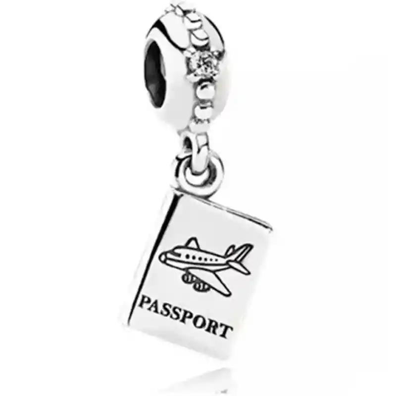 Charm Pasaporte Hermoso charm colgante con forma de Pasaporte, fabricado en plata 925 de primera ley y cristales, 100% compatible con pulseras de charm.