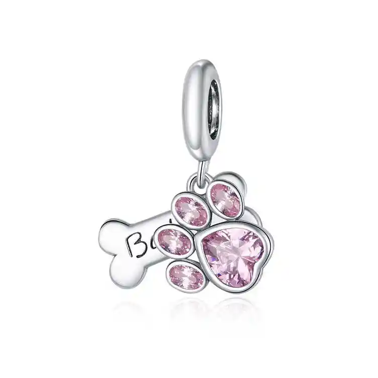 El charm está hecho de Plata esterlina 925 con su respectivo sello. Está incrustado de Zirconia cúbica de color rosado.