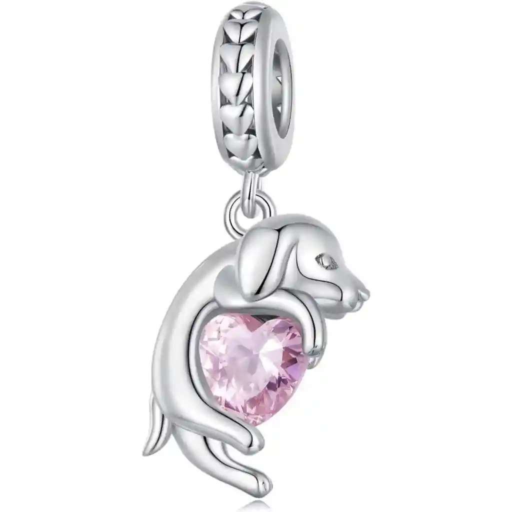 Este tierno charm de plata 925 representa a un perrito apoyado sobre un corazón rosa, simbolizando el amor y la lealtad de las mascotas. Perfecto para quienes sienten a sus perritos como parte de la familia, es una joya que transmite cariño y dulzura en cada detalle. Compatible con pulseras tipo Pandora o collar, se convierte en el regalo ideal para amantes de los animales y los accesorios con significado. Especificaciones: - Material: Plata Ley 925 - Color: Rosa - Medida: 2.4cmx1.2cm - Compatibilidad: Pulseras tipo Pandora y similares - Estilo: Tierno / Animal Lover / Elegante - Presentación: incluye caja elegante, ideal para regalar. - Estilo: Elegante. PULSERA NO INCLUIDA