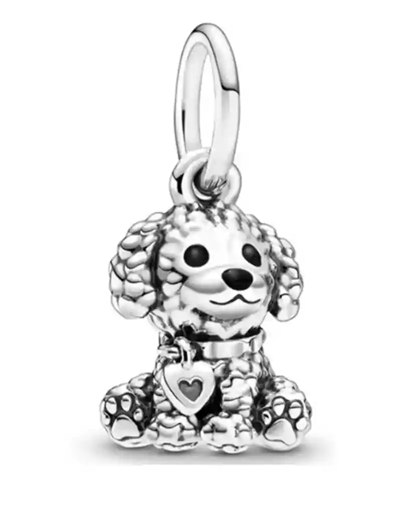 CHARM POODLE CANICHE, CUERPO COMPLETO Hermoso charm colgante con forma de poodle caniche con un collar de corazon colante, fabricado en plata 925 de primera ley y cristales, 100% compatible con pulseras de charm.