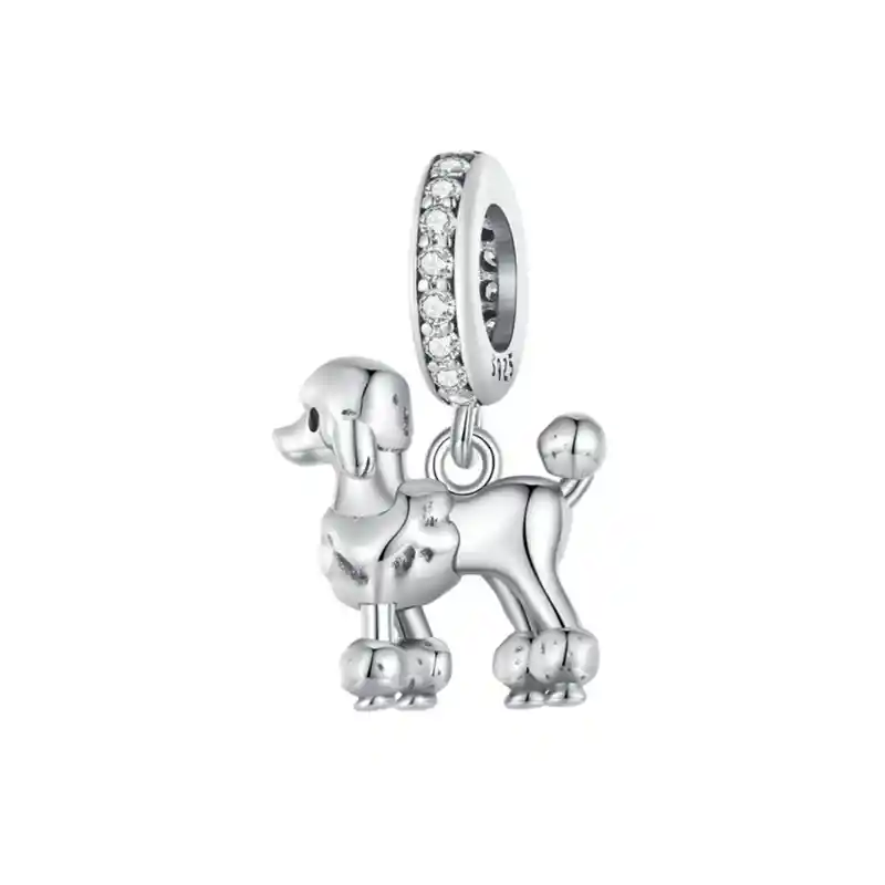 CHARM POODLE COLGANTE Hermoso charm colgante con forma de poodle con su pelito cortado, fabricado en plata 925 de primera ley y cristales, 100% compatible con pulseras de charm.