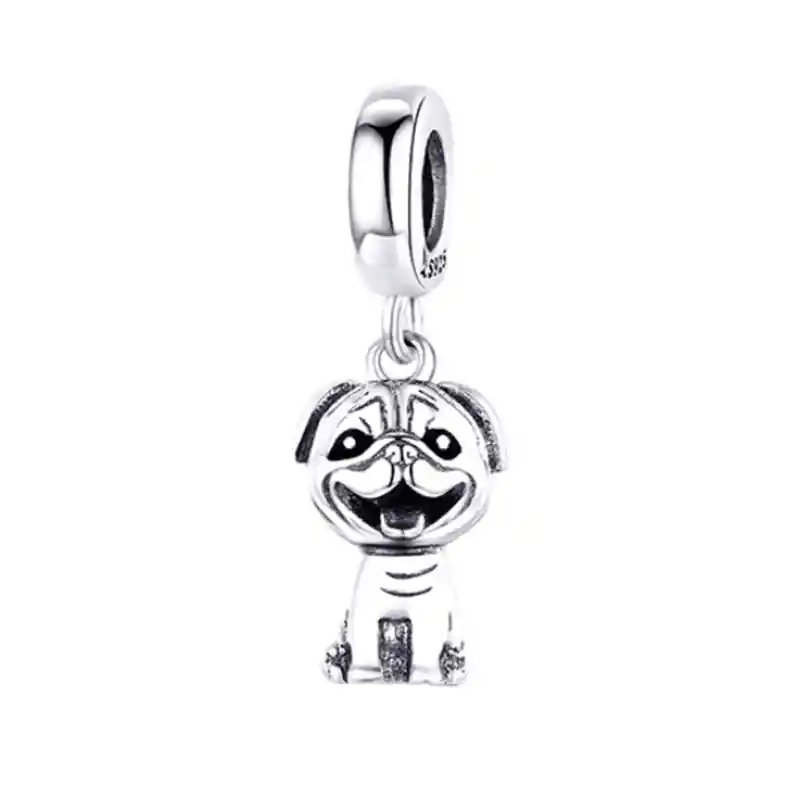 CHARM COLGANTE DE PUG CUERPO COMPLETO Hermoso charm colgante con forma de Pug cuerpo completo, fabricado en plata 925 de primera ley y cristales, 100% compatible con pulseras de charm.