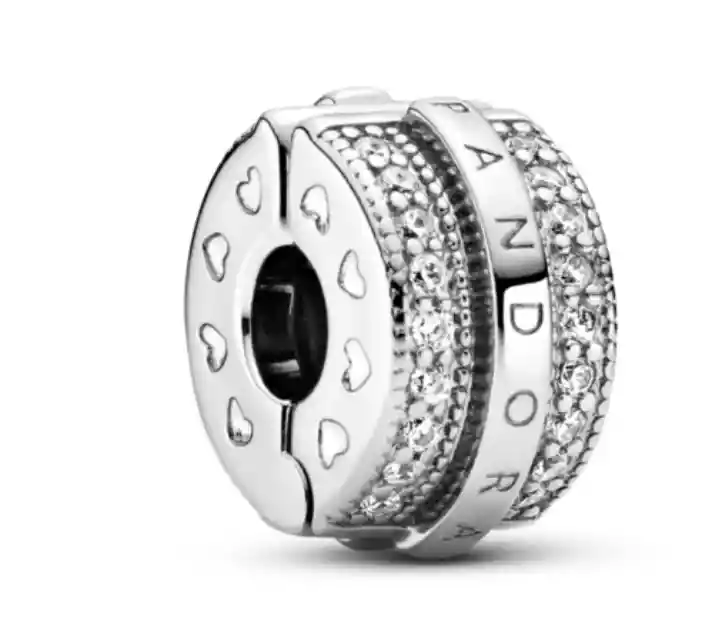 El charm está hecho de Plata esterlina 925 con su respectivo sello Es totalmente compatible con pulseras Pandora y cualquieras otras marcas europeas. Haz que cada día sea un poco especial con el sujetador Líneas de pavé relucientes. Acabado a mano en plata esterlina con dos hileras de circonias cúbicas transparentes engaste abalorio y una hilera realzada con el logotipo de Pandora en el centro, este sujetador se puede usar en cualquier evento en cualquier temporada y hará un impacto de estilo sofisticado. El reluciente pavé, los corazones en relieve y los bordes cuadrados le brindan un intrigante detalle a esta pieza indiscutiblemente icónica.