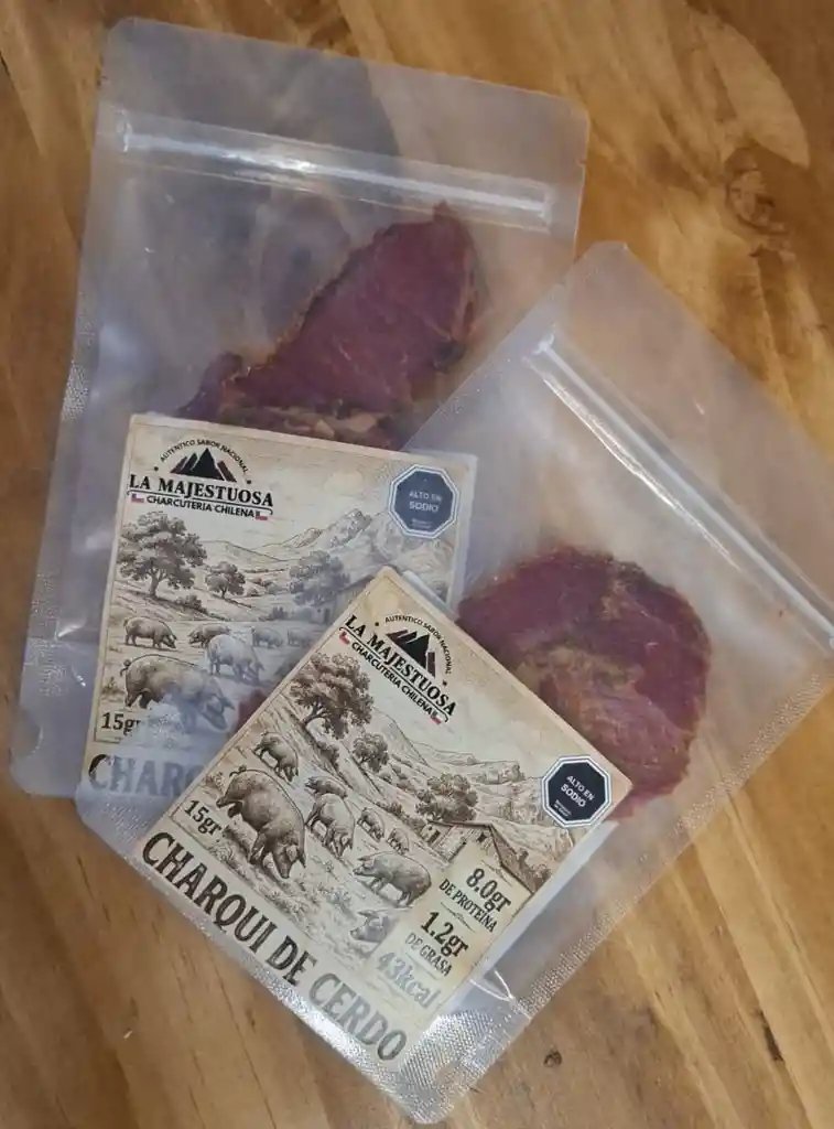 Charqui de Cerdo Delicioso charqui elaborado con carne de cerdo cuidadosamente seleccionada y deshidratada para concentrar todo su sabor. De textura firme y sabor intenso, es un snack proteico ideal para disfrutar en cualquier momento. Perfecto para picoteos, actividades al aire libre o como ingrediente en preparaciones tradicionales. Un producto sabroso, práctico y lleno de carácter. 🐖🥩