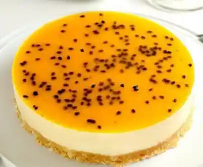 Rica base de galleta, relleno con una rica mezcla de queso crema, crema de leche y pulpa de maracuyá, cubierto con rica mermelada de maracuyá natural.