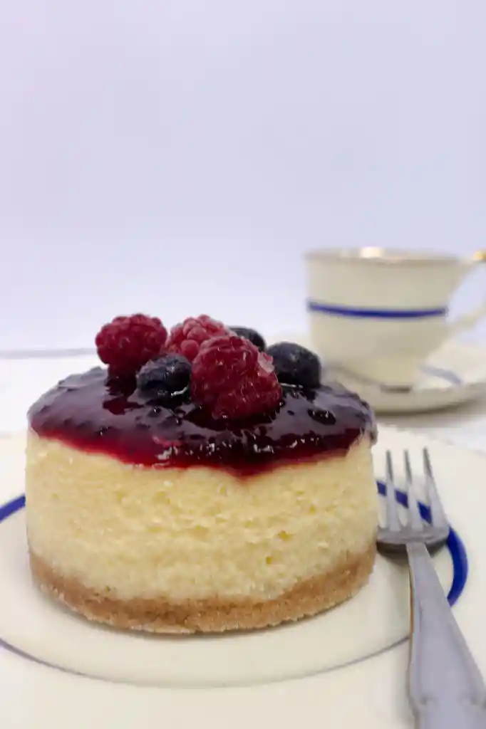 Cheescake horneado tipo new york con confitura de berries artesanal.