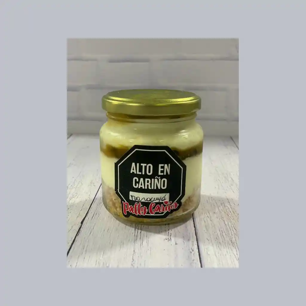 Exquisito mousse de maracuyá con una pequeña base de bizcocho.