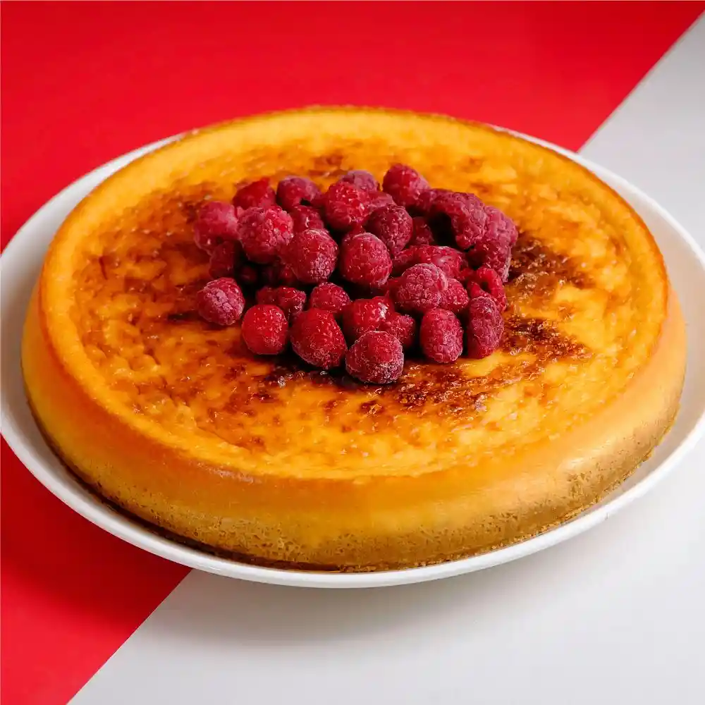 Base de galletas rellena con una mezcla de queso crema y cubierto con frambuesas. Formato: 15 personas