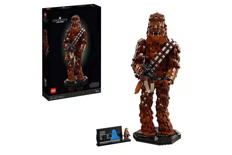 Celebra el 40 aniversario de Star Wars: El Retorno del Jedi creando un justo reconocimiento a un legendario Wookiee con la figura LEGO® Star Wars™ Chewbacca (75371) para construir y exponer. Usa tu Fuerza creativa para recrear su peludo cuerpo al estilo LEGO y construye su bandolera y su ballesta. Esta impresionante figura LEGO construible de aproximadamente 46 cm de altura trae una base de exposición integrada. El set incluye también una placa con información sobre el personaje y una minifigura LEGO de Chewbacca con una ballesta que dispara. Disfruta construyendo Las sencillas instrucciones que encontrarás en la caja y en la app LEGO Builder te guiarán en cada paso del proceso de construcción. Después, expón tu obra con orgullo. Una galaxia de posibilidades Empezó hace mucho tiempo en una galaxia muy, muy lejana. Ahora, la historia continúa en tu hogar con los sets LEGO Star Wars coleccionables para adultos. Explóralos y descubre fantásticas ideas de regalo para fans de Star Wars. • Figura de Chewbacca LEGO® Star Wars™ (75371) para construir: Celebra el 40 aniversario de Star Wars: El Retorno del Jedi y rinde homenaje a un heroico Wookiee con este detallado modelo para construir y exponer. • Diseñada para exponer: La figura LEGO® de Chewbacca construible no articulada sostiene una ballesta para construir, lleva una base de exposición integrada y viene acompañada de una placa con información sobre el personaje. • Incluye una minifigura LEGO® de Chewbacca: La minifigura LEGO de Chewbacca cuenta con una ballesta que dispara y se puede exponer junto a la placa informativa. • Construye y colecciona: Este modelo de Chewbacca construible forma parte de una serie de personajes LEGO® Star Wars™ para construir, exponer y coleccionar a la que también pertenece el modelo de R2-D2 (75308). • Idea de regalo: Regálate este set de 2319 piezas o dáselo como obsequio de cumpleaños o detalle por las fiestas a un fan o un coleccionista de objetos del universo Star Wars™. • Un personaje de Star Wars™ diseñado para impactar: Esta figura LEGO® de Chewbacca construida con ladrillos mide aproximadamente 46 cm de altura. • Instrucciones paso a paso: Las instrucciones ilustradas están disponibles tanto en la caja como en la app LEGO® Builder. • Desde una galaxia muy, muy lejana hasta tu hogar: Los sets LEGO® Star Wars™ coleccionables para adultos se han diseñado para ti, el exigente amante de los pasatiempos que disfruta relajándose con proyectos creativos que favorecen la atención plena. • Garantía de calidad: Los elementos y ladrillos LEGO® cumplen rigurosas normas del sector para asegurarnos de que se conecten con gran sencillez y firmeza, aportando solidez a los modelos. • Conformidad con los requisitos de seguridad: Los componentes LEGO® se dejan caer, se calientan, se aplastan, se retuercen y se analizan exhaustivamente para verificar que satisfacen estrictos estándares mundiales de seguridad.