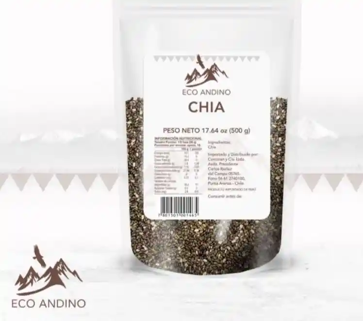 Chia 500 gramos. Marca Eco Andino. Producto importado del Perú
