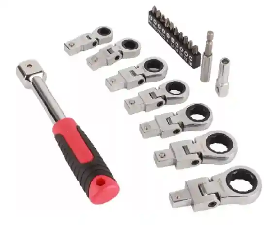 20 piezas Juego de llaves de trinquete de cabeza flexible Juego de herramientas Torx grande métrico Juego de llaves planas giratorias Juegos de destornilladores con estuche Hecho de cuerpo forjado CR-V Chrome Vanadium de alta calidad para un torque y resistencia confiables, durabilidad excepcional y resistencia duradera resistente a la corrosión; Cabezales flexibles de 180 grados Con un giro suave de 180 grados, los cabezales mantienen cualquier ángulo para deslizarse sobre los sujetadores. Son libres de moverse con cada golpe, lo que permite que la llave navegue alrededor de las obstrucciones a lo largo de la trayectoria de giro Las herramientas mecánicas vienen en un estuche extraíble para accesorios de herramientas eléctricas, por lo que es fácil de transportar Amplia aplicación: desde reparaciones en carretera hasta retoques con el automóvil o la bicicleta, adecuado para aplicaciones industriales y automotrices