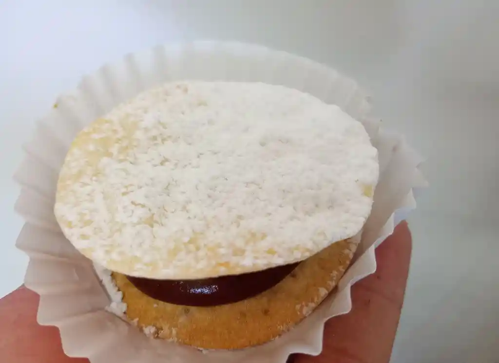 dulce chileno de fina masa de hoja rellena con manjar casero cubierto con azúcar flor