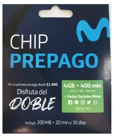 Chip Compañía Movistar , 4GB + 400 min