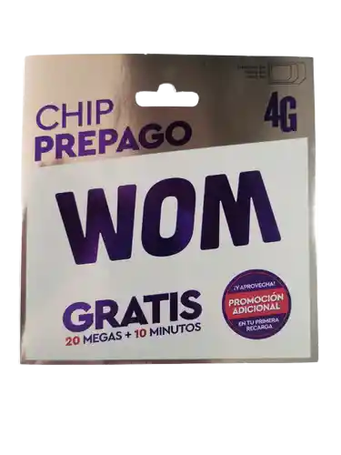 Chip de Línea Compañia WOM Disfruta de hablar con tus seres queridos desde cualquier lugar del país, WOM cuenta con una cobertura amplia con la que te podrás mantener en línea siempre que lo desees y podrás estar en contacto con los que amas. 1GB + 50Min Vigencia de 15 días.