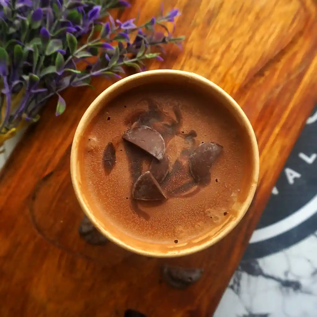 Helado de chocolate belga con cerveza artesanal stout y salsa artesanal de chocolate en una reducción de cerveza negra.