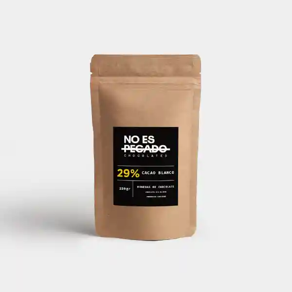 Monedas de Chocolate Blanco, 29% de Cacao. Origen de cacao : Colombia y Perú Especial para bombonería o bocados. Cremoso y suave chocolate blanco, con sutiles notas aromáticas frutales, ideal para amantes de los sabores lácteos. En preparaciones, se recomienda combinar con sabores ácidos, tal como en un mousse de maracuyá o una ganache de frambuesas. *Sin gluten. Formatos 250gr.
