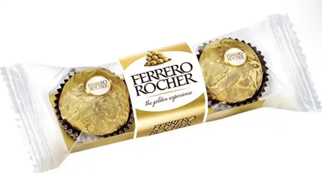 Un paquete de 3 bombones marca Ferrero Rocher,