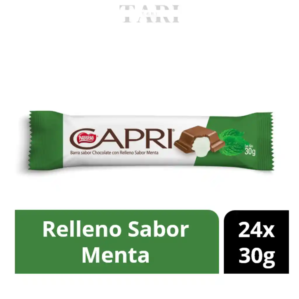 Chocolate Relleno Capri Menta una tradicional barra sabor chocolate rellena con salsa sabor menta, una mezcla fantástica que te encantará. Formato 30 g