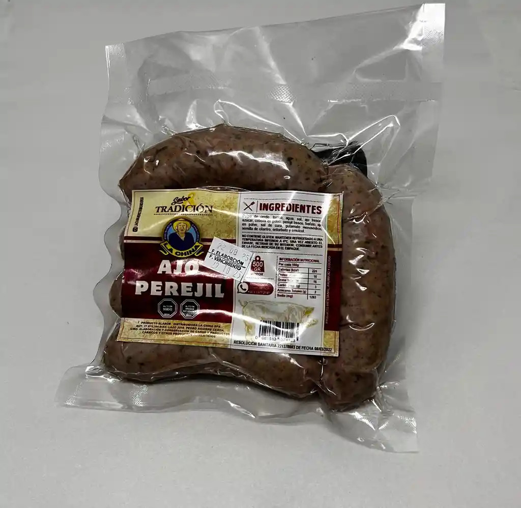 Disfruta de un delicioso Chorizo Ajo Perejil para parrilla de la reconocida marca EMBUTIDOS LA CHINA, con un peso neto de 1/2 kg y 5 unidades por envase. Este producto es elaborado en chile con carne de cerdo de alta calidad y se presenta en una práctica bolsa de 1/2 kilo. Su sabor con ajo perejil lo hace ideal para disfrutar en tus parrilladas. Atrévete a probarlo y sorprende a tus invitados con su exquisito sabor. ¡No te quedes sin el tuyo!