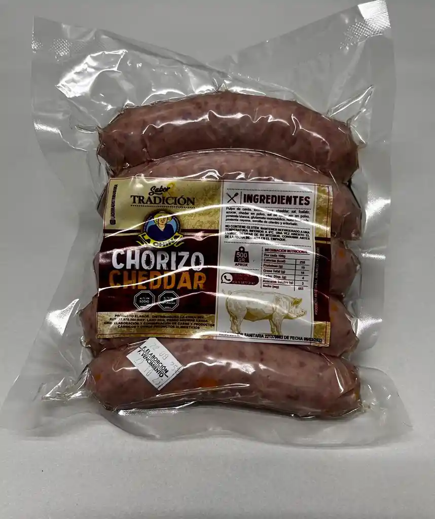 Disfruta de un delicioso Chorizo Chedar para parrilla de la reconocida marca EMBUTIDOS LA CHINA, con un peso neto de 1/2 kg y 5 unidades por envase. Este producto es elaborado en chile con carne de cerdo de alta calidad y se presenta en una práctica bolsa de 1/2 kilo. Su sabor con Cheddar lo hace ideal para disfrutar en tus parrilladas. Atrévete a probarlo y sorprende a tus invitados con su exquisito sabor. ¡No te quedes sin el tuyo!