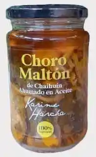 Ingredientes: Choro maltón, aceite de maravilla y sal. Choro Maltón de Chaihuín, la costa valdiviana con su particular sabor dulzón, perfectamente ahumado en madera de roble. Un sabor exclusivo con delicadeza que embriaga los sentidos. Frasco vidrio 340 g