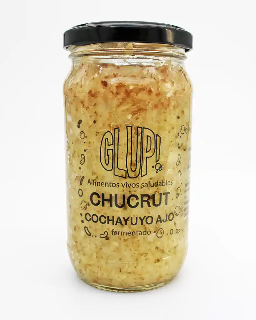Chucrut fermentado: Son fermentados durante 3 semanas antes de ser comercializados para que proliferen los lactobacilos, bacterias que ayudarán a fortalecer tu sistema inmune a través de una mejor absorción de nutrientes de tu microbiota, entre tantas cosas más que nos entregan las bacterias. Tendrás una mejor digestión con nuestros fermentos ya que son probióticos. Tenemos 5 sabores: ajo, zanahoria, betarraga, cochayuyo y natural. Ingredientes: Repollo+sal de mar + más el sabor de cada uno. NO TIENEN VINAGRE. Frasco de vidrio reutilizable.