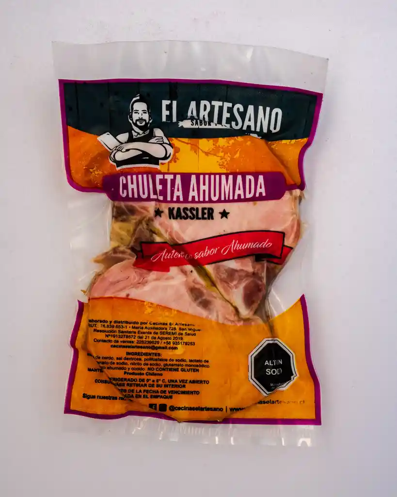Chuleta Ahumada Kassler Cecinas El Artesano. El empaque contiene 2 unidades.
