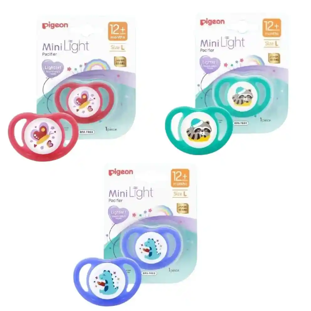 Chupete Mini Light Pigeon 12 Meses+, hechos de la clase más suave de silicona, con una forma que se adapta realmente a la boca del bebé. Características: Los bebés tienen una necesidad natural de succionar. Los chupetes satisfacen sus necesidades y calman sus emociones. Aparte de eso, los chupetes también ayudan a los bebés a aprender la respiración nasal. Chupete Odontológico Mini Light Talla L (12 meses+). Liviano, Libre De BPA. Mayor circulación de aire. La silicona suave del consuelo se ajusta naturalmente a la boca del bebé.