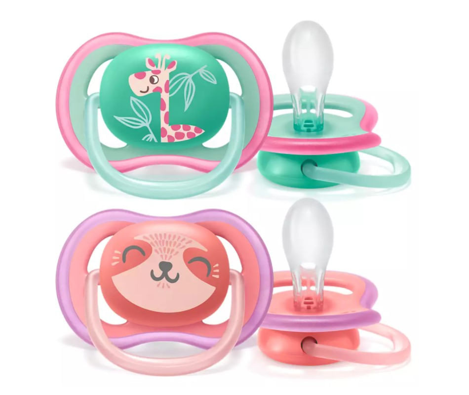 Chupetes ligeros y transpirables para pieles sensibles, perfecto para el crecimiento de dientes y encías.Calme a su bebé con estos modelos que dejan respirar la piel y contribuyen al desarrollo bucal saludable. Ultra air 18 M+ cuenta con orificios para el aire extragrandes que mantienen la piel sensible suave y seca, y una tetina extrafirme para dientes y encías en crecimiento."