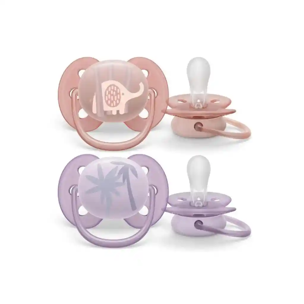 Chupetes Ultra Soft Avent 0-6 Meses Rosa/Lila El chupete más suave para la piel sensible de su bebé Cuide la piel más sensible con el chupete Philips Avent ultra soft. El escudo suave* y flexible del chupete se adapta a las curvas de las mejillas del bebé, por lo que deja menos marcas e irrita menos la piel para una mayor tranquilidad y comodidad.
