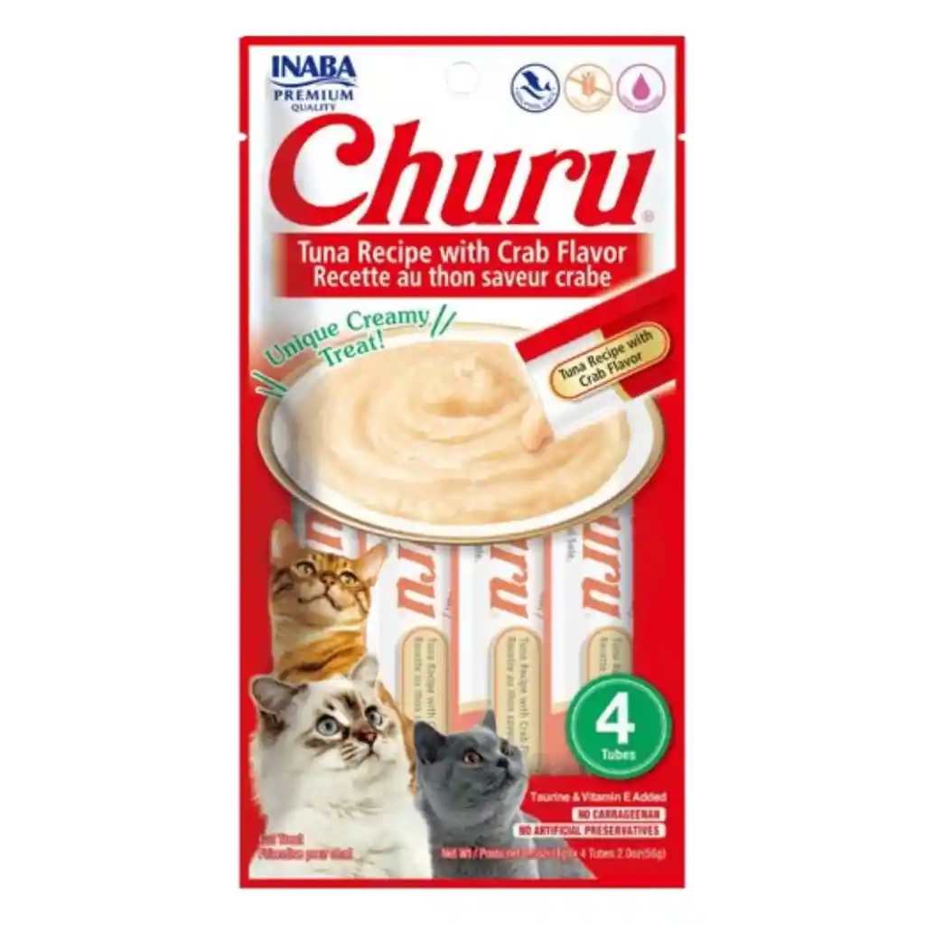 El Churu atún con Cangrejo, es un delicioso snack para gatitos, está hecho con atún y cangrejo para darle un excelente sabor lleno de proteínas. También contiene taurina, té verde y vitamina E para aumentar la nutrición y no contiene granos o ingredientes artificiales. Simplemente, rasgue, exprima y alimente directamente del tubo o en un tazón. Además, es una excelente manera de agregar hidratación para apoyar el bienestar general, desde la cola hasta los bigotes. Características del Churu atún con Cangrejo: El puré cremoso, sin cereales, ni colorantes ni ingredientes artificiales. Está hecho con agua pura, atún y cangrejo. Los gatos pueden lamerlo directamente del tubo, lamerlo de un tazón o disfrutarlo mezclado con su croqueta o comida húmeda para que las comidas sean más sabrosas. Aumenta la hidratación diaria al proporcionar una humedad deliciosa en cada sorbo, lo que puede ayudar a respaldar el bienestar general y la salud urinaria. Simplemente, rasgue y exprima como un regalo, un refrigerio o un adorno de comida que también ayudará a fortalecer su vínculo con su amigo. Beneficios del Churu atún con Cangrejo: Alto contenido de humedad para proporcionar la hidratación vital que necesitan los gatos Vitaminas añadidas Ayuda a mantener un fuerte vínculo entre padres y gatos. Sin conservantes ni colorantes artificiales Con la cremosa textura y sabroso aroma que los gatos adoran Ingredientes: Agua Atún Almidón de tapioca Sabores naturales Goma guara Sabor Cangrejo natural Suplemento de vitamina E Taurina Extracto de té verde