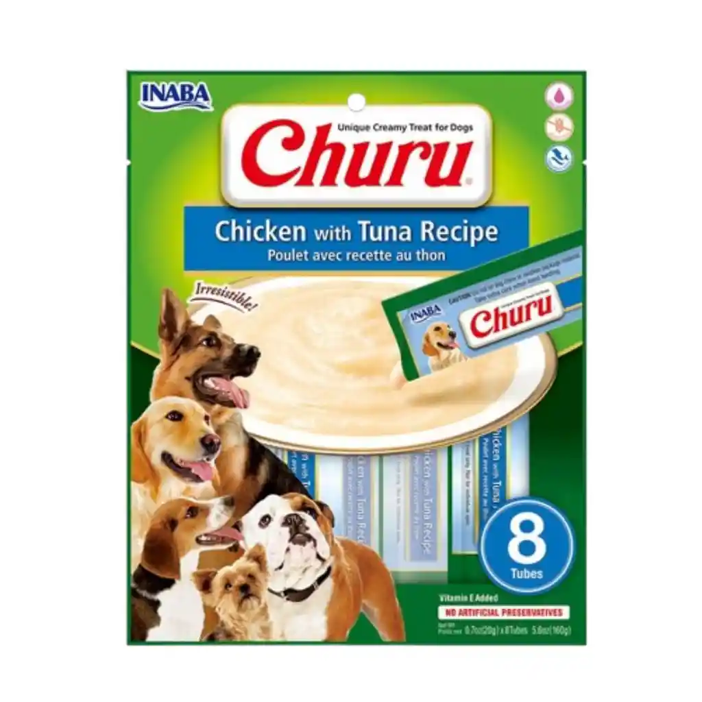Estas golosinas cremosas para perros están hechas con pollo y atún salvaje 100% puro y natural de granja! Disponible en cinco deliciosas variedades, Churu® Purées tiene un alto contenido de humedad que los caninos necesitan para la salud. Simplemente abra un tubo y apriételo un poco para alimentar a mano estas golosinas sin cereales ni conservantes. También puede verterlos en un tazón o usarlos como aderezo sabroso en alimentos húmedos o secos. INGREDIENTES Agua, pollo, atún, tapioca, sabor natural a pollo, goma guar, extracto de levadura, gelatina, suplemento de vitamina E, extracto de té verde. ANÁLISIS GARANTIZADO Proteína cruda (mín.) 6,50% Grasa cruda (mín.) 0,20% Fibra bruta (máx.) 0,30% Humedad (máx.) 91,00% Vitamina E (mín.) 310 UI / kg