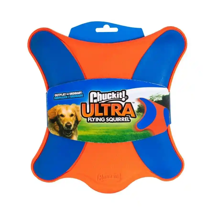 Si tu perro ama atrapar juguetes al vuelo, el frisbee Ultra Flying Squirrel de Chuck It! será su nuevo favorito. Con forma de ardilla voladora, está hecho de goma ultra durable con interior de espuma, lo que lo hace ligero para volar lejos y suave al morder, cuidando su dentadura. Flota sin problema y sus colores azul y naranja destacan en cualquier terreno. Características clave Forma de ardilla voladora que planea con facilidad Goma resistente y espuma liviana: vuela lejos sin perder durabilidad Suave al atrapar: no daña los dientes de tu perro Flotante: perfecto para playa, lago o piscina Colores llamativos para alta visibilidad en tierra y agua Fácil de limpiar y secado rápido Beneficios para tu perro Potencia la actividad física y la agilidad Fortalece el vínculo con sesiones de “tira y busca” dinámicas Combate aburrimiento y estrés con juego interactivo prolongado Especificaciones Detalle Descripción Material Goma + espuma de goma Medidas 9,3 × 9 × 2,2 cm Colores Azul y naranja Recomendado para Perros medianos y grandes ¡Lanza el Ultra Flying Squirrel y mira cómo tu perro se luce atrapándolo en el aire, ya sea en el parque o chapoteando en el agua!
