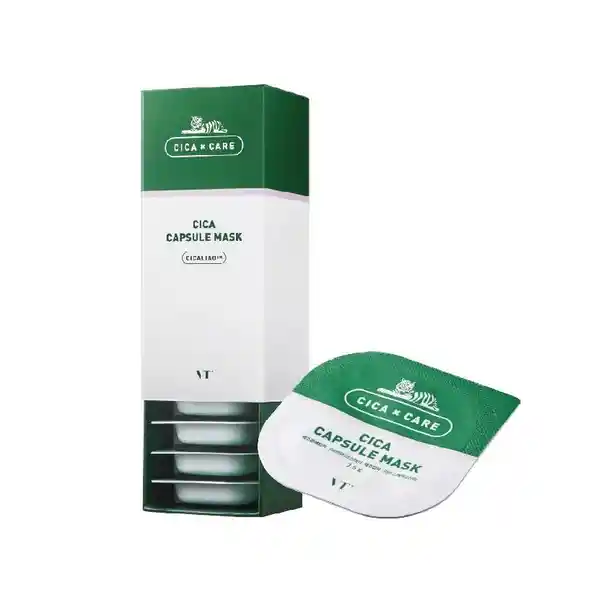 Contiene 10 Unidades. Lavable Para Iluminar, Calmar, Hidratar y Revitalizar la Piel Apagada o Cansada. Contiene Cicalio un Ingrediente Exclusivo de Vt Compuesto Por la Unión de Extracto de Centella Asiática Complejo Centella 4X (Asiático Ácido Madecásico Asiáticos Madecassoside) y Extracto de Propóleo Verde. Su Textura de Arcilla (Con Extractos de Té Verde, Centella Asiática y Jazmín Naranja) Ayuda a Remover Células Muertas y Absorber el Exceso de Sebo. ¡Esta Mascarilla es un Excelente Hidratante Para Pieles Mixtas! Características: Producto Cruelty Free¿Cómo Aplicarlo?1. Aplicar el Contenido de Una Cápsula Por Todo el Rostro Limpio Con la Ayuda de Una Espátula o Directamente Con Tus Dedos. Evitar la Zona de Los Ojos.2.