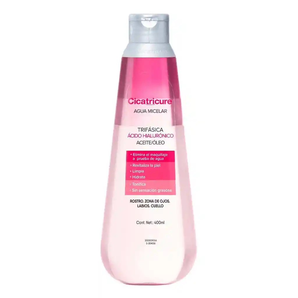 Tecnología trifásica con ácido hialurónico. Elimina el maquillaje a prueba de agua, revitaliza la piel, limpia, hidrata y tonifica sin sensación grasosa. Para rostro, zona de ojos, labios y cuello.