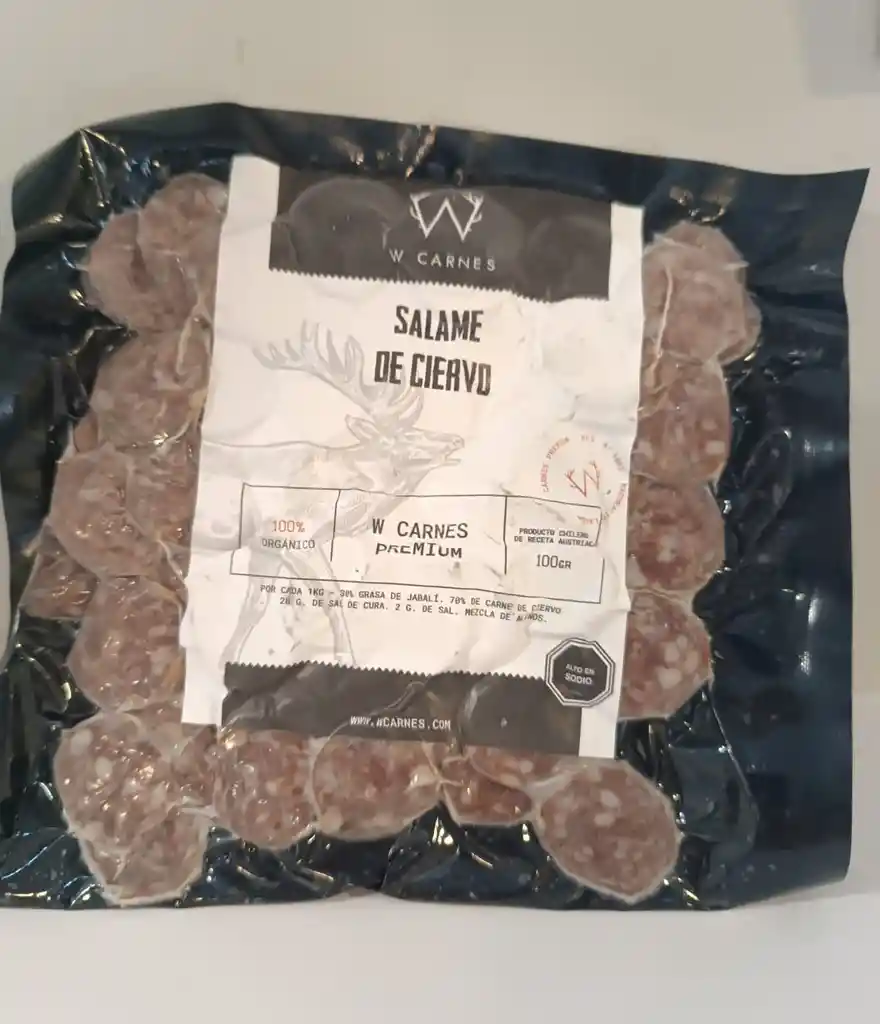 Embutido de carne de ciervo finalmente laminado. Producto Congelado