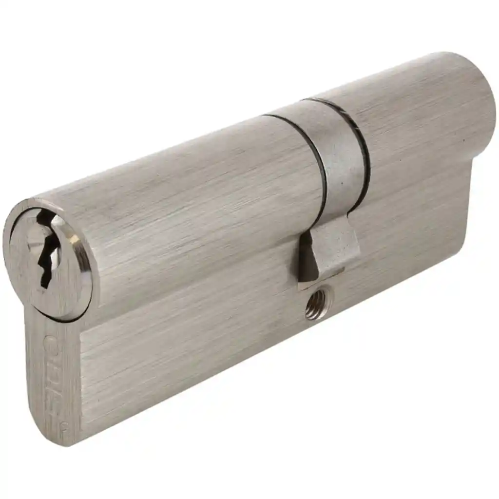 - Cilindro euro perfil para cerraduras de embutir de 80mm - 80mm largo, 35 mm y 45 mm por lado respecto del centro (leva) - Llave exterior / llave interior - Perno M5X55 mm largo, Material acero Inoxidable SS201 - Leva centrada - 6 combinaciones - Incluye 3 llaves estándar
