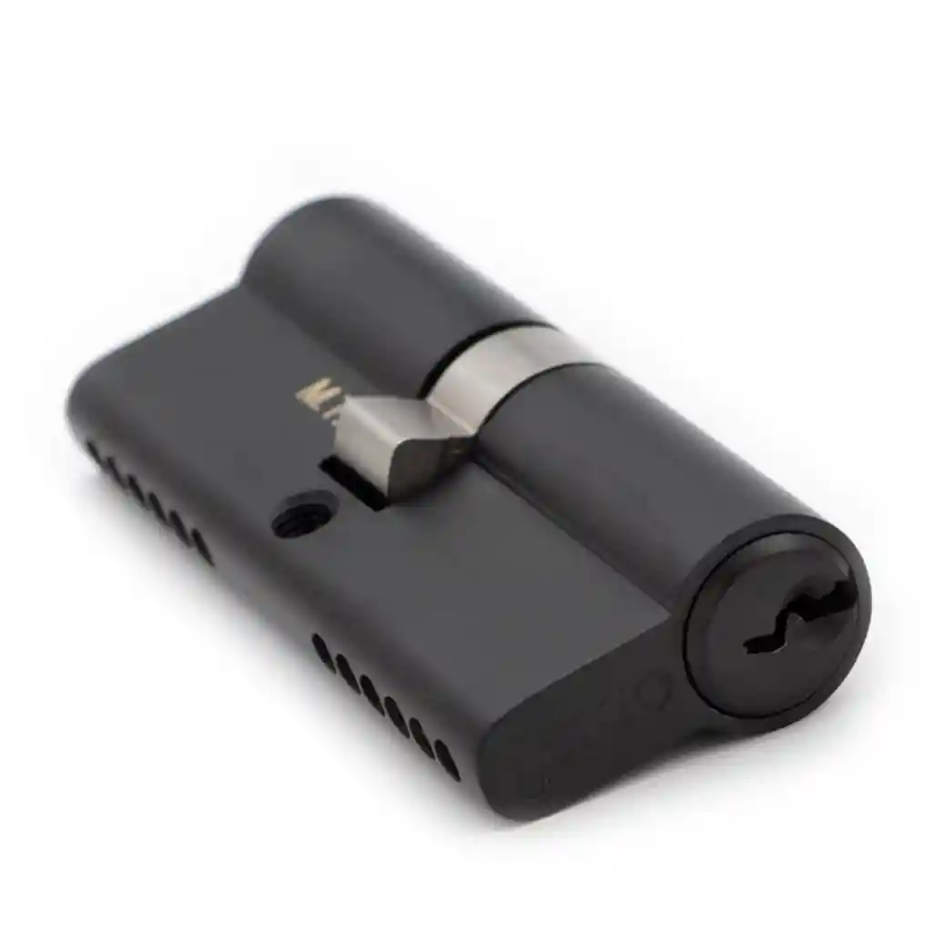 - Cilindro Europerfil perfecto para cerraduras de embutir, con comodidad y seguridad desde el interior - Configuración: Llave exterior y seguro interior - Compatible con puertas de hasta 50 mm de espesor - Construido en latón con terminación negra y leva desplazada (30°) - Sistema de 6 pines con 3 llaves dentadas incluidas - Incluye tornillos cortos y largos para ajustes precisos a diferentes backsets