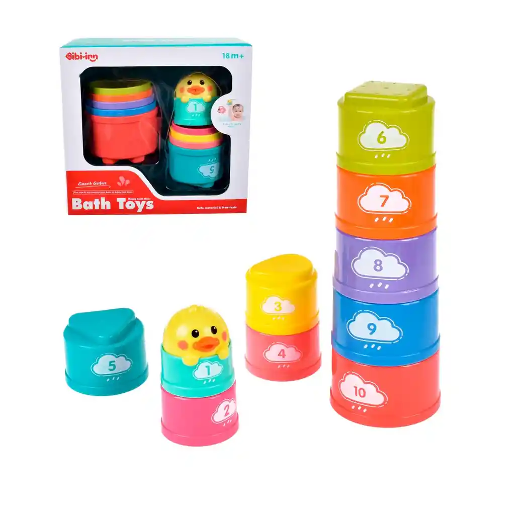 ¡Haz que la hora del baño de tu bebé esté llena de entretención con este set de juego Apilable para el Baño! Con el cuál los más pequeños de la casa podrán estimular su capacidad de encajar y apilar, en un divertido juego imaginativo. Con estos cilindros con diseño colorido, los niños pueden ir poniéndolos uno encima del otro encajando las figuras geométricas y también podrán conocer el orden de este siguiendo la secuencia numérica, ayudándoles así a identificarlos mientras los apila del más grande al más pequeño. Siendo este un juguete totalmente completo para que el desarrollo de tu pequeño se ponga en movimiento de una forma divertida, ayudándole a desarrollar sus habilidades cognitivas, sensoriales, creativas e imaginativas, su expresión social, emocional, la relación Mano/Ojo además de la relación causa y efecto.