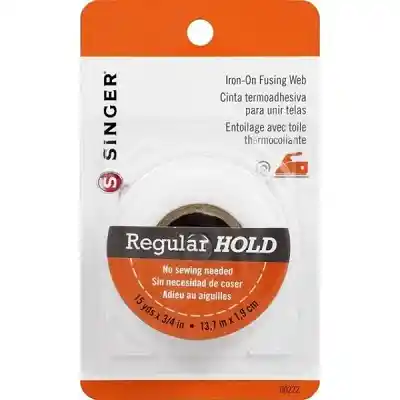 Cinta termoadhesiva permanente con plancha. Para unir telas sin necesidad de coser. Medida 13,7 mts x 1,9 cm.