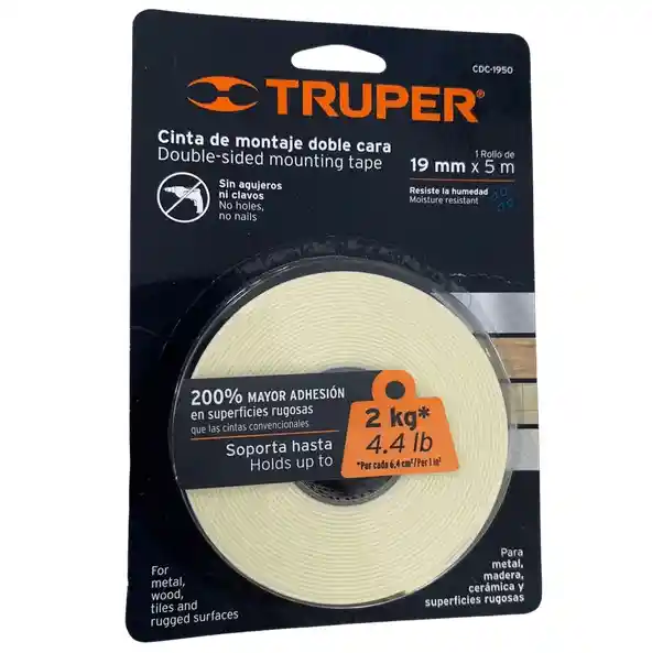 Cinta doble contacto Truper Ancho: 19mm Largo 5 m