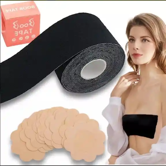 Composición Cinta con adhesivo especial Cinta levanta busto cubre pezón Contenido del paquete 1 cinta 5cm*5cm contienen: - Algodón - Spandex - Adhesivo - Acrílico Detalle de la condición Características: - Levanta cualquier tamaño de busto - Hipoalergénico - Libre de látex - Un rollo de 5 metros durará múltiples usos - Usa trajes que no podías usar antes porque ahora puedes ir sin sostén. - El desnudo es perfecto debajo de la ropa de color - Impermeable, perfecto para debajo de los trajes de baño - Corta la longitud de tu propia cinta para que se adapte a tu figura única - No es doloroso de quitar - Tejido de algodón elástico - Se adapta a tu cuerpo - Alta Adherencia. 1 cinta por paquete en color beige