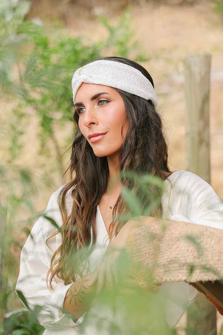 Este Cintillo es parte de nuestra colección de edición limitada “Joya de Mar”, inspirada en la profundidad y calma del mar. Fue confeccionado a mano con delicadeza, reutilizando retazos textiles de vestidos de la marca AE Novias. Puede ser usado como turbante sobre el pelo o como cintillo por debajo del pelo, para darte un toque original en uno de los días más especiales de tu vida.Telas: ase de raso cubierto de tul con lentejuelas plateadas