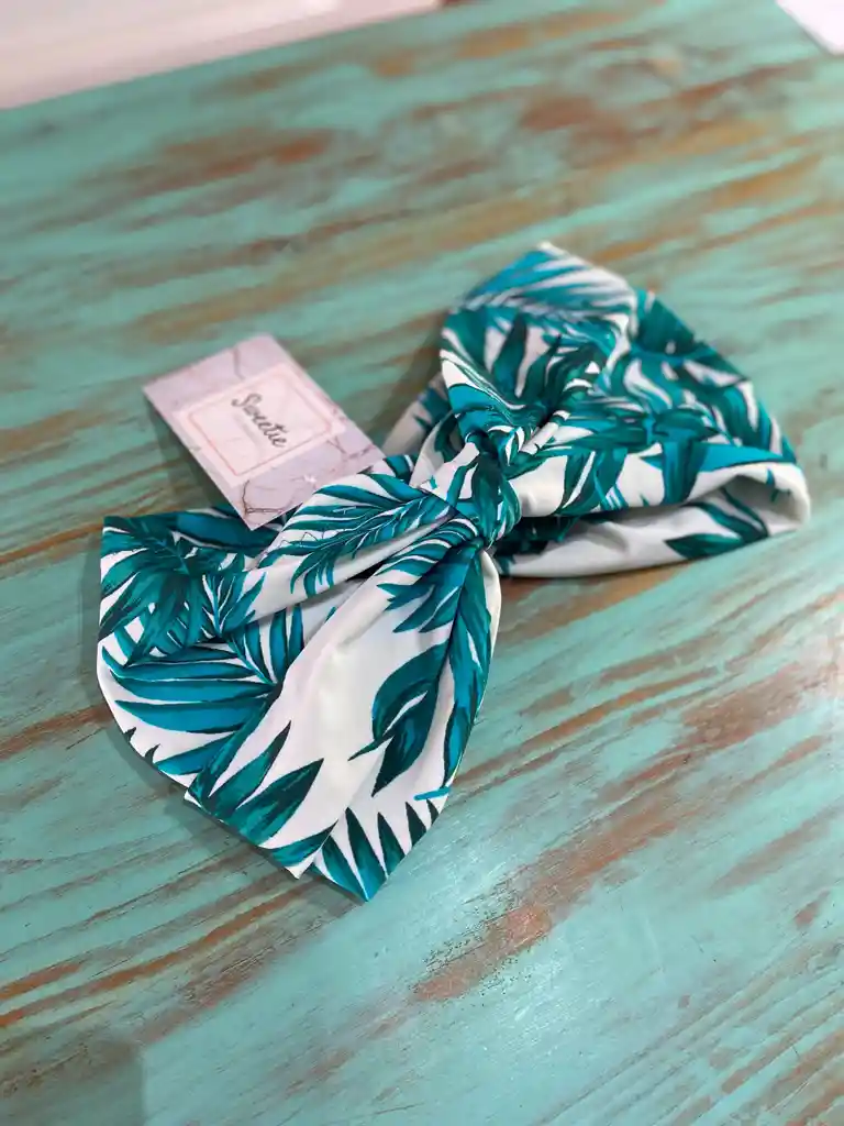 CINTILLO ESTILO TURBANTE CON DISEÑO TROPICAL ELASTICADO.