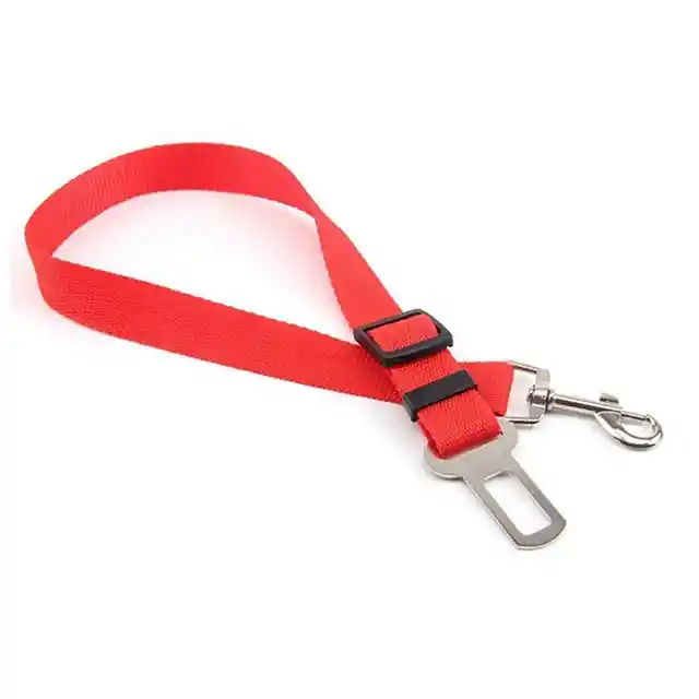 Protege a tu mascota de accidentes y llévala de paseo de manera segura. - La seguridad es lo primero: Se engancha directamente a la hebilla de tu automóvil. Esto en conjunto con sus correas ajustables, permitirá a tu mascota que se siente o ponga de pie, de manera cómoda durante el viaje. - Ajuste universal y uso sencillo: Diseñado para cualquier tipo de vehículos. - Fácil de ajustar: Compatible con cualquier tamaño de mascota. Se recomienda el uso de un arnés para mayor seguridad. Dimensiones: Ancho 2,5 cm Largo 46-75 cm Color: Rojo