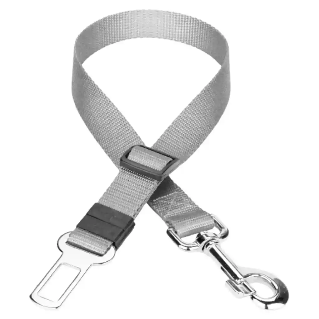 Protege a tu mascota de accidentes y llévala de paseo de manera segura. - La seguridad es lo primero: Se engancha directamente a la hebilla de tu automóvil. Esto en conjunto con sus correas ajustables, permitirá a tu mascota que se siente o ponga de pie, de manera cómoda durante el viaje. - Ajuste universal y uso sencillo: Diseñado para cualquier tipo de vehículos. - Fácil de ajustar: Compatible con cualquier tamaño de mascota. Se recomienda el uso de un arnés para mayor seguridad. Dimensiones: Ancho 2,5 cm Largo 46-75 cm Color: Gris